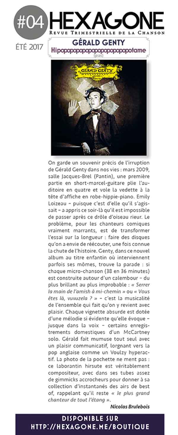 Albums Gérald Genty – Hipopopopopopopopopopopopotame By David Desreumaux - 7 janvier 2018 0 278 Facebook Twitter o