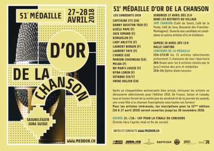La Médaille d’Or de la chanson – 51eme édition – Les 27 et 28 avril à Saignelégier dans le Jura Suisse.